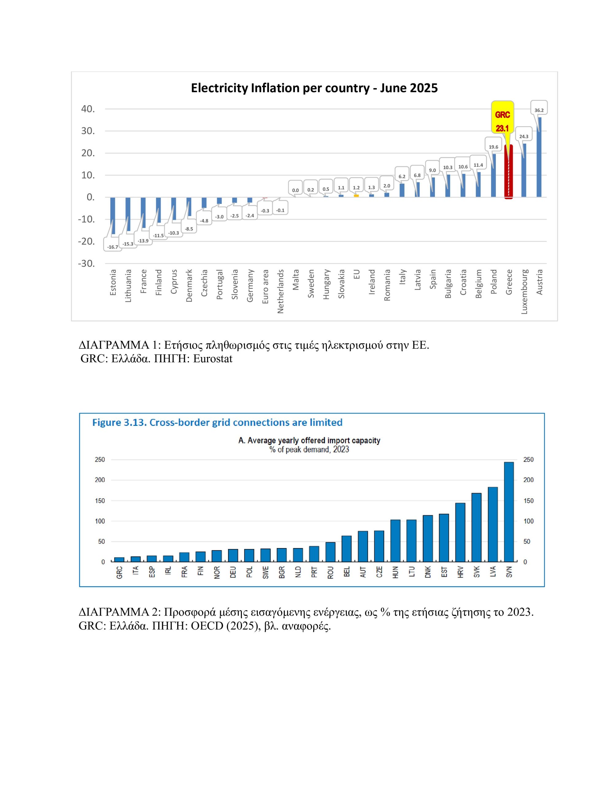 [vii] Τα PPA (commercial power purchase agreements) είναι συμφωνίες μεταξύ παραγωγών ενέργειας και βιομηχανίας, ενώ τα CfD (Contracts fo rDifference) είναι σχήματα κρατικών ενισχύσεων της παραγωγής. Για την χρήση τους καθώς και τον ρόλο που μπορεί να έχουν στην διαμόρφωση μιας πιο αποτελεσματικής αγοράς, βλέπε μεταξύ άλλων και την μελέτη του ΟΟΣΑ: OECD Economic Surveys: European Union and Euro Area 2025, OECD Publishing, Paris. https://doi.org/10.1787/5ec8dcc2-en.